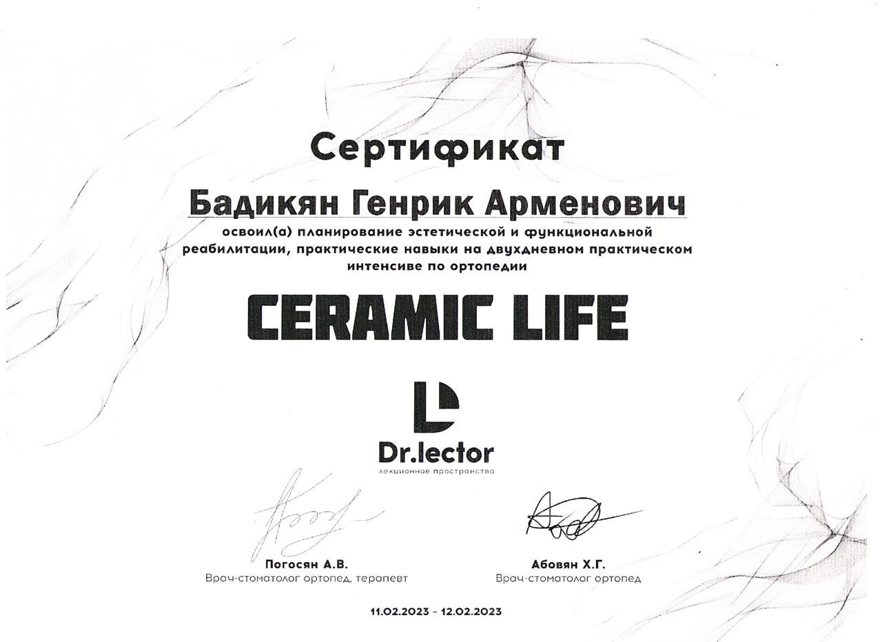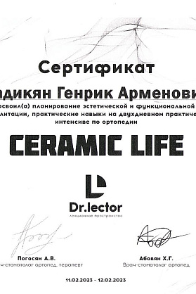 Сертификат о прохождении "Планирование эстетической и функциональной реабилитации". Погосян А.В., Абовян Х.Г.