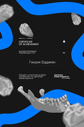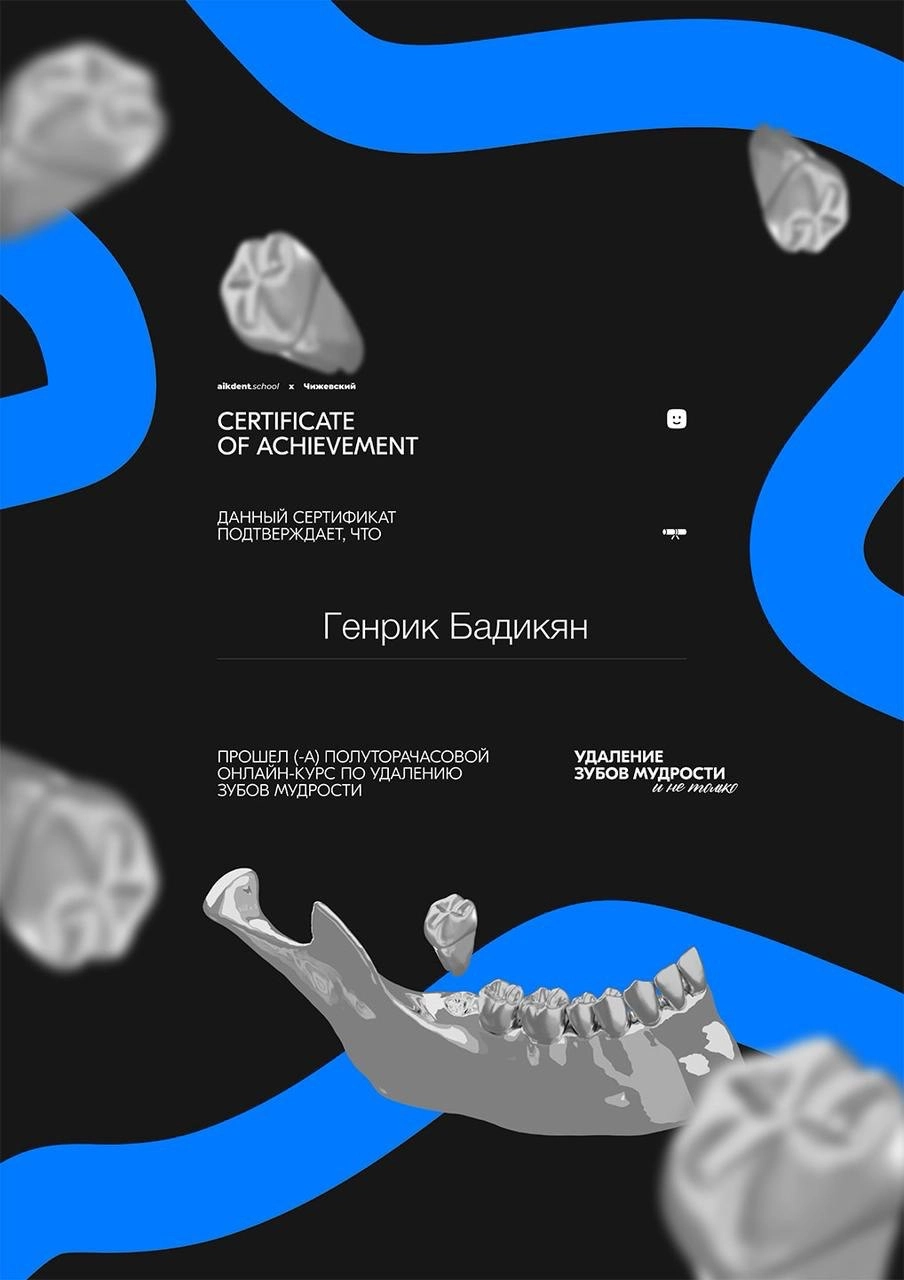 Сертификат о прохождении онлайн-курса "Удаление зубов мудрости и не только".".
