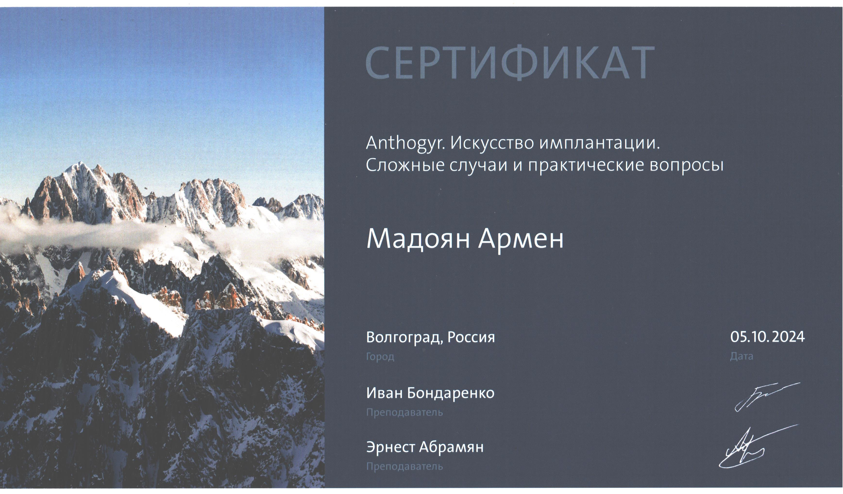 ПОВЫШЕНИЕ КВАЛИФИКАЦИИ по программе "Актуальные вопросы современной имплантологии". Межрегиональном Институте Непрерывного Образования | 2017г.